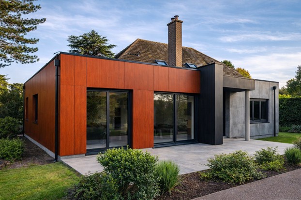✅ Design architectural : bardage TRESPA pour une esthétique moderne, durable et sans entretien, parfaitement intégrée à l’existant.